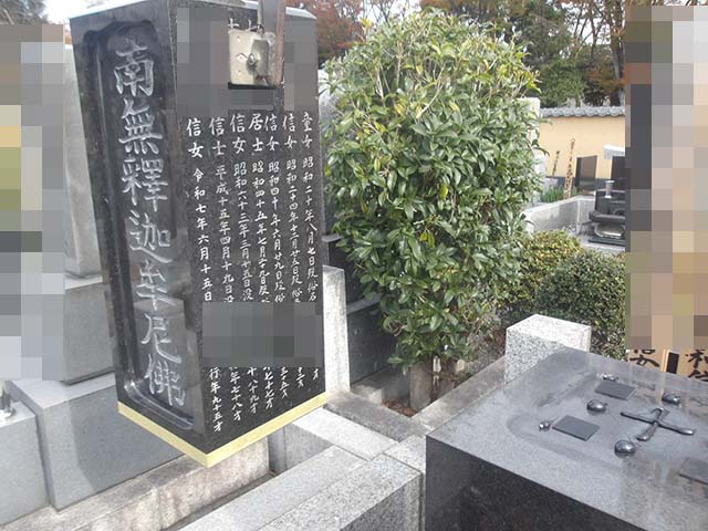 両家墓としても使えるように曹洞宗の「南無釈迦牟尼佛」を字彫りします。