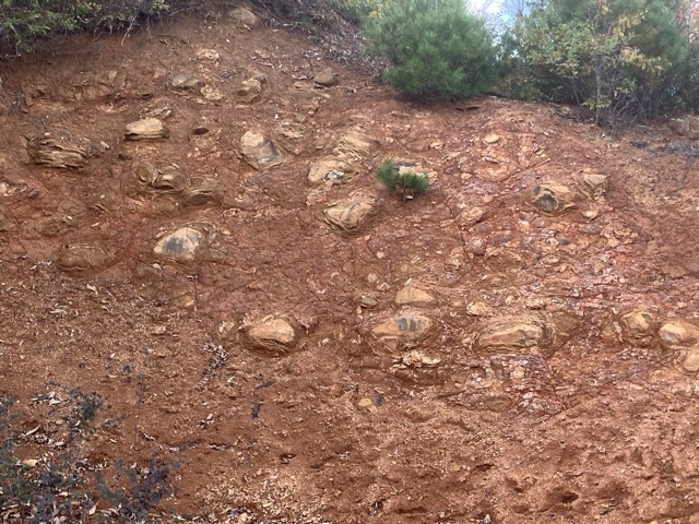 土の中に玉状の石が見えると思います。